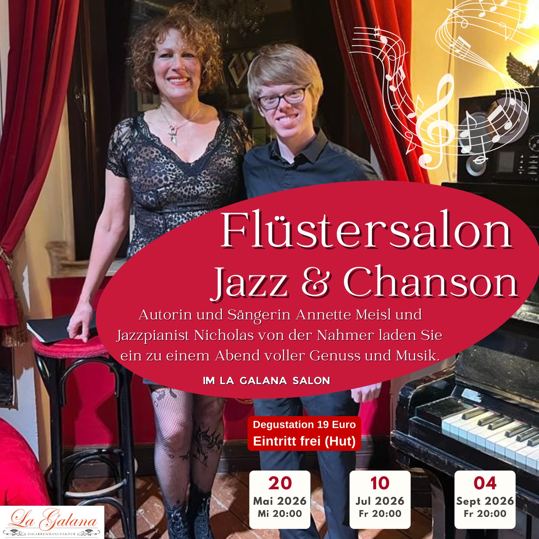 Autorin und Sängerin Annette Meisl und Jazzpianist Nicholas von der Nahmer laden Sie ein zu einem Abend voller Genuss und Musik.